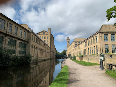 The mill in Saltaire has been renovated and is an impressive sight. In its day it must have been a dark and grimy place with all the smoke in the air (photos of the area show many, many chimneys and of course all home heating would be from coal fires). Now with the buildings sandblasted clean it all looks quite beautiful and idyllic. Who wouldn't want to work there?