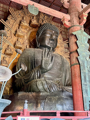 The Kofuku-ji temple is the home of an immense 50 ft bronze Buddha - Todai-ji - the largest in the world completed in 751. This statue is seriously impressive - a massive bronze casting that is etched in fine detail. This was perhaps the most impressive thing I saw in Japan and I saw some pretty impressive things.