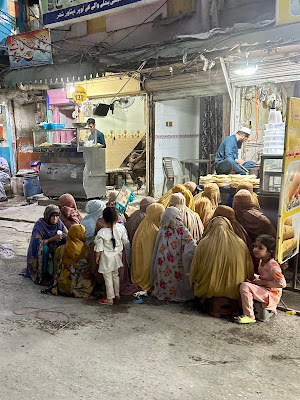 We then drove back into Lahore and visited the old town, entering through the Delhi Gate. This was most interesting - inside the walls of the old city, with narrow streets, lots of shops, lots of people. Motorcycles sped through the streets skilfully threading in and out of the pedestrians. and somehow avoiding colliding with anyone. While such a situation would never even be considered in the US or UK, here it seemed perfectly normal.
